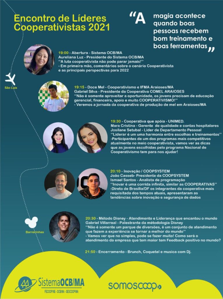 Nesta quinta-feira (25/11), em Barreirinhas – MA, estará ocorrendo o encontro de Líderes Cooperativistas 2021, organizado pelo Sistema OCD do Maranhão, onde haverá um grande encontro com todas as lideranças de cooperativas do Estado do Maranhão.