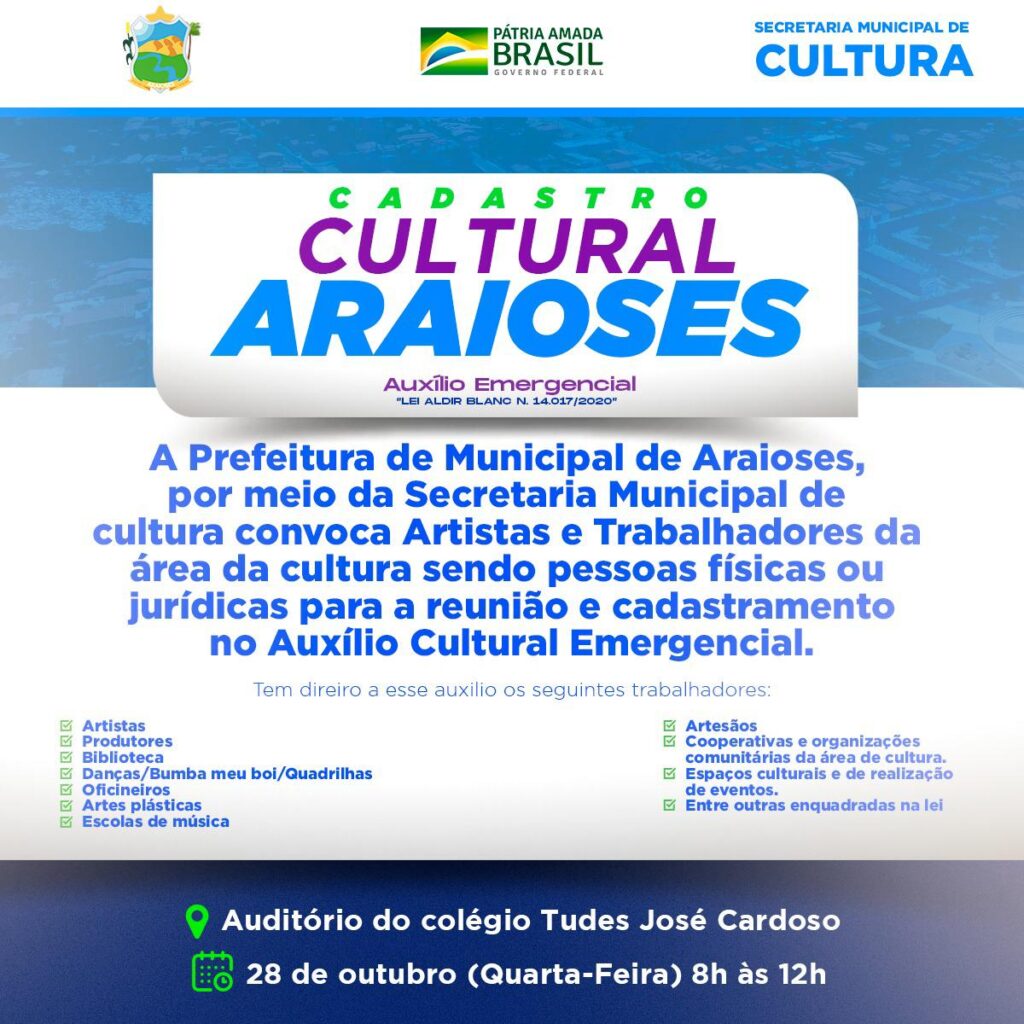 Araioses: Nesta quarta-feira (28) haverá reunião e cadastramento no AUXILIO CULTURAL EMERGENCIAL
