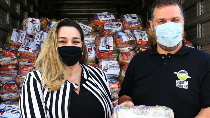 Nesta segunda-feira (28/06), a Prefeita Luciana Trinta, esteve na capital maranhense, São Luis, participando da solenidade do Programa Comida na Mesa. O governador Flavio Dino, juntamente com o deputado federal, Gastão Vieira e o Secretário de Estado de Agricultura Familiar, Rodrigo Lago, realizaram a entrega das cestas básicas para o município de Araioses, com a finalidade de atender famílias em condição de vulnerabilidade social.