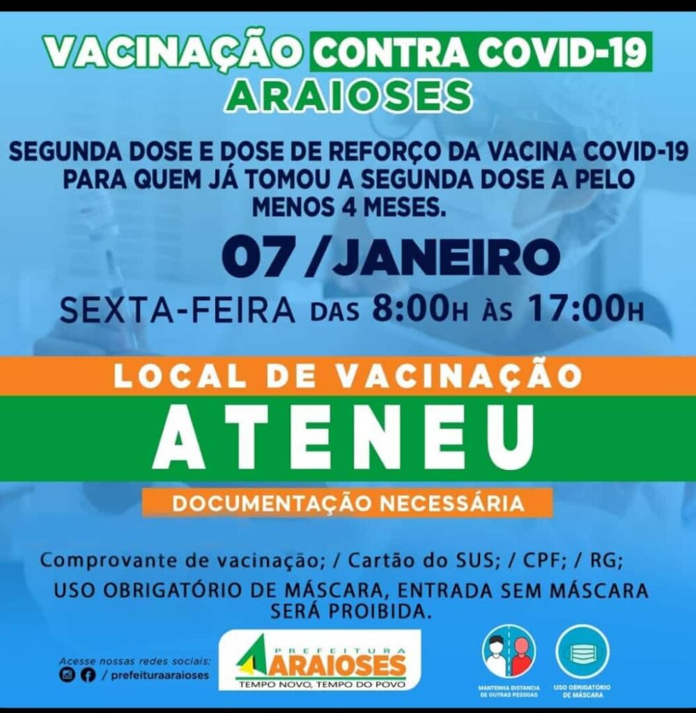 Atenção! Vacinação nesta sexta-feira contra COVID-19 em Araioses