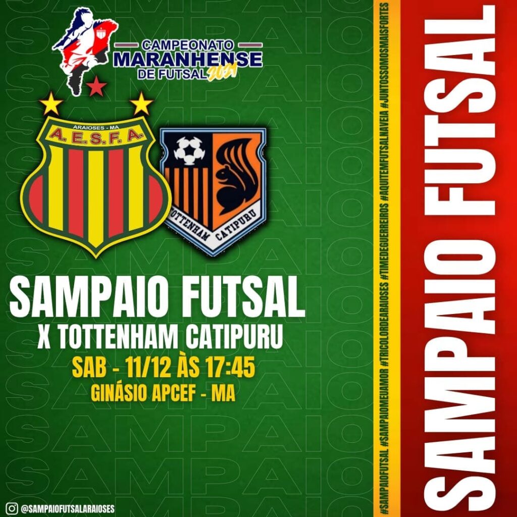 O Sampaio Araioses inicia sua caminhada em busca do bicampeonato já no sábado à tarde. O time tricolor enfrenta o Tothenham Catipuru (São Vicente Férrer) às 17h45, no Ginásio da Apcef com transmissão ao vivo no canal do youtube do @totalesportesma . No domingo, os campeões de 2020 voltam à quadra para encarar o Juventud (Viana).