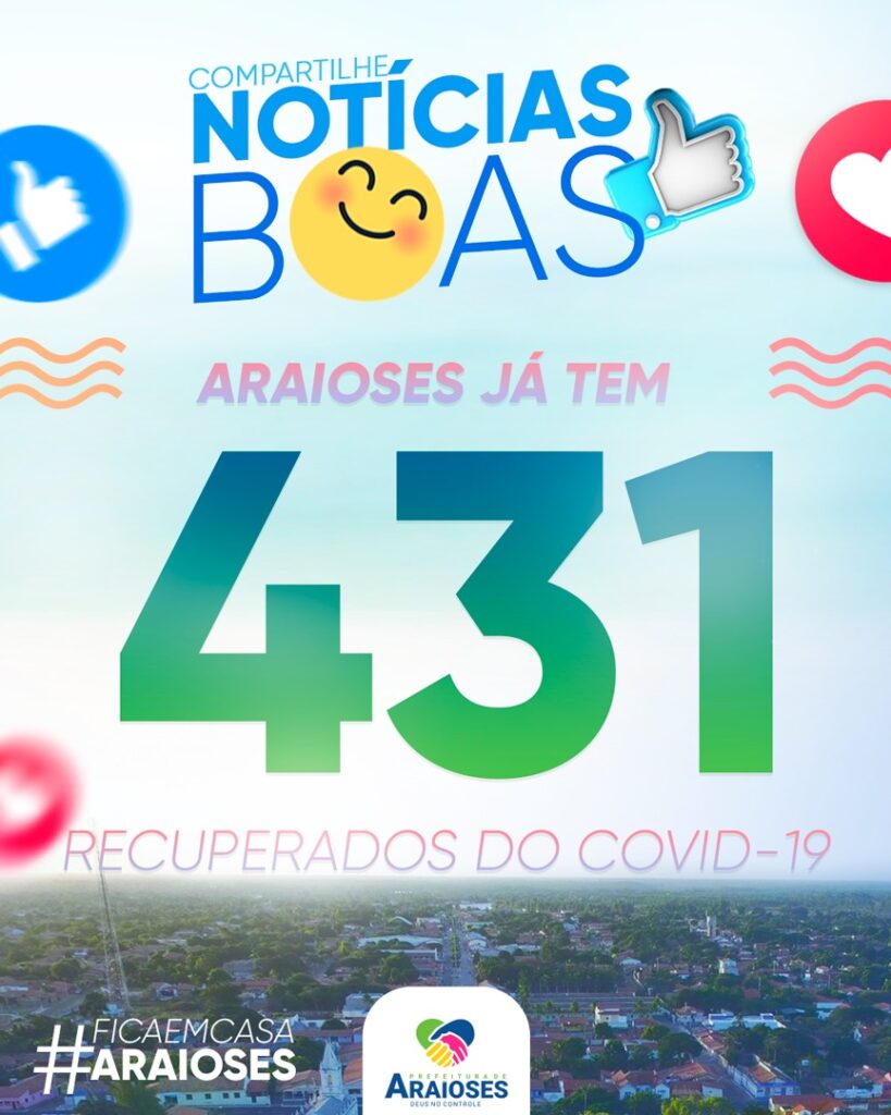 O total de casos confirmados em Araioses são 496. Há 56 pacientes ativos, 431 pacientes recuperados e 09 óbitos. Os casos CONFIRMADOS ATIVOS e casos SUSPEITOS que estão em ISOLAMENTO DOMICILIAR e INTERNADOS totalizam 85 e seguem sendo acompanhados pela Secretaria Municipal de Saúde Araioses que está realizando todos os procedimentos de acordo com Secretaria de Estado de Saúde e Ministério da Saúde.