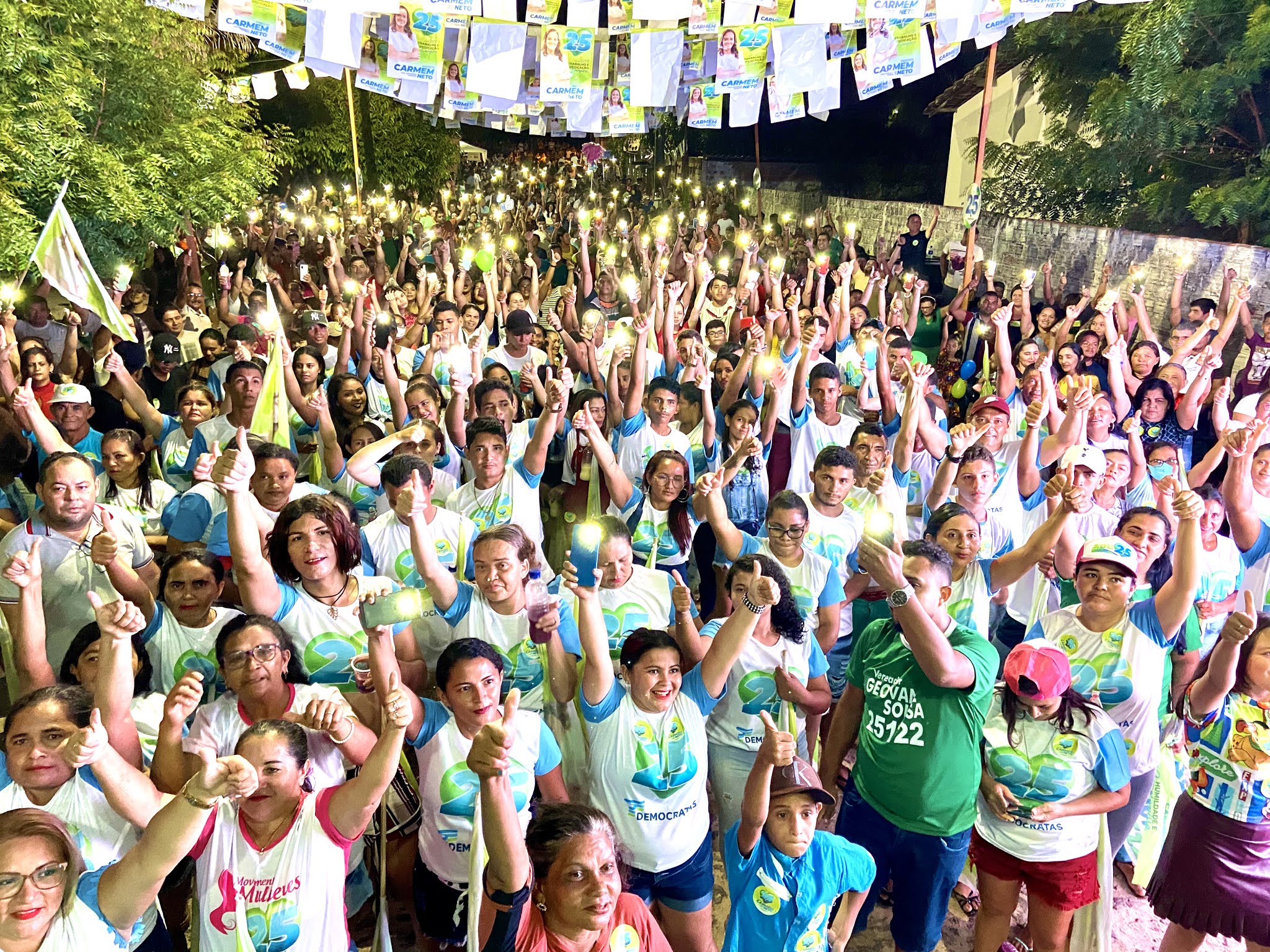Carmem Neto e Paulo Neto foram recebido por uma multidão que aplaudiram a candidata, numa grande demonstração de apoio ao grupo 25.