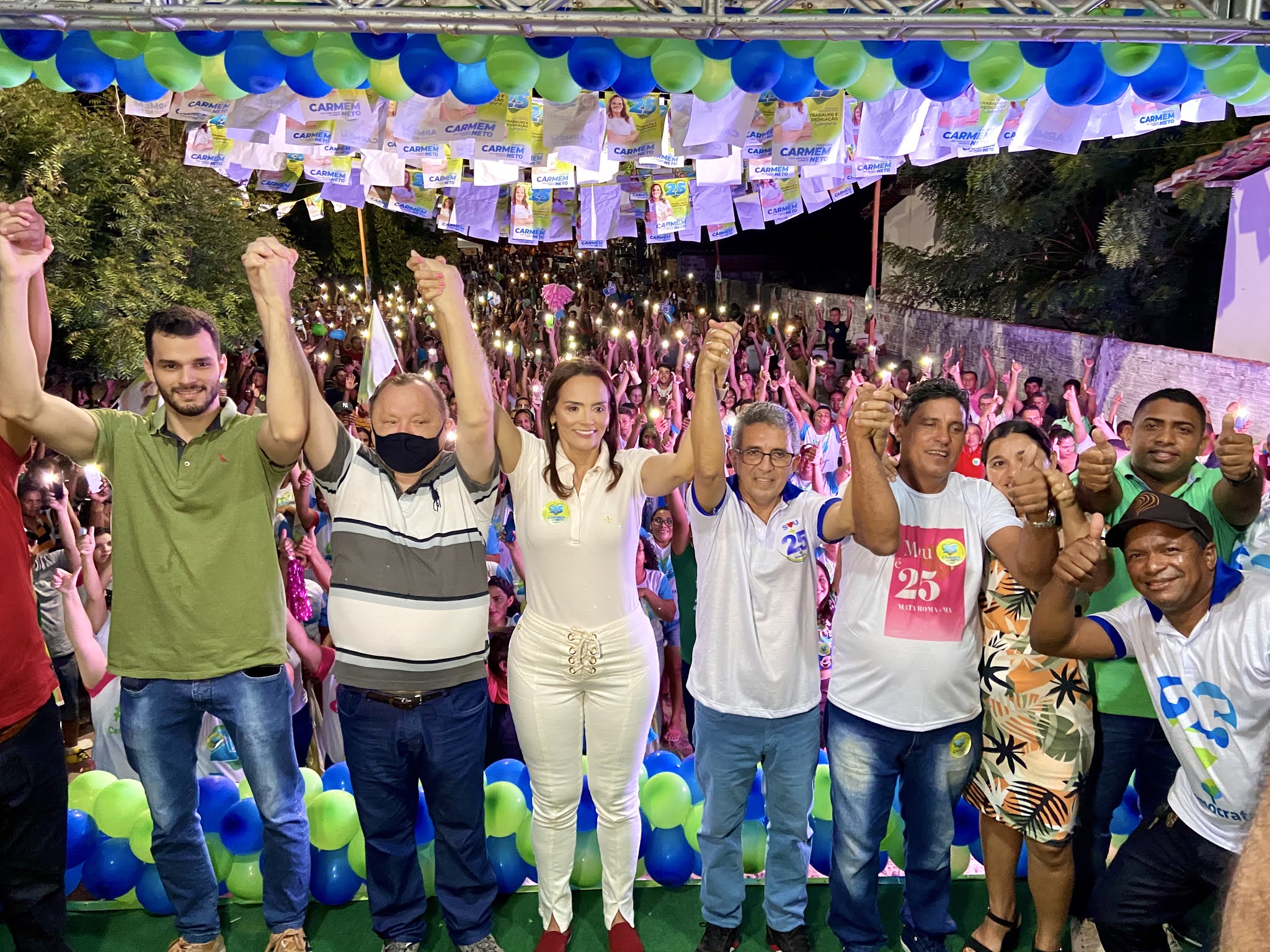 Após uma ação movida da oposição de Mata Roma contra a candidata a prefeita Carmem Neto, o grupo liderado pelo deputado Paulo Neto mostrou força e união em um grandioso comício na Vila Ana Lúcia.
