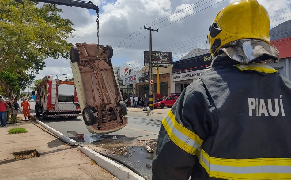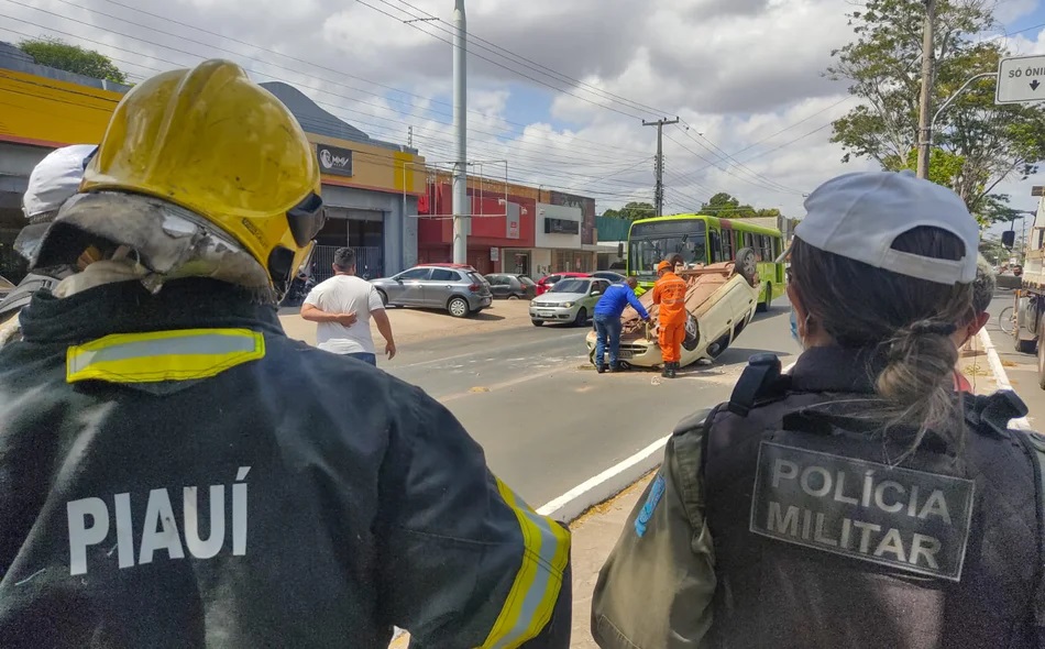 Um veículo modelo Renault Clio capotou após colidir em um caminhão baú na manhã desta quarta-feira (01), por volta de 9h, na Avenida Presidente Kennedy, próximo ao balão do São Cristóvão, na zona leste de Teresina.