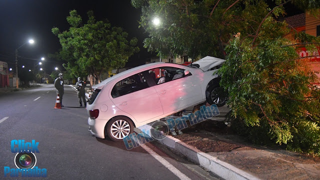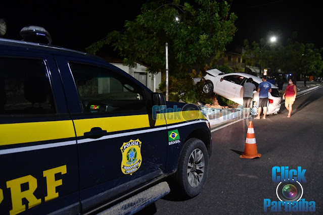 Um carro “subiu” em uma árvore após um acidente no início da madrugada desta segunda-feira (21), a ocorrência foi registrada por volta da 00h30min na Avenida Pinheiro Machado, em Parnaíba.