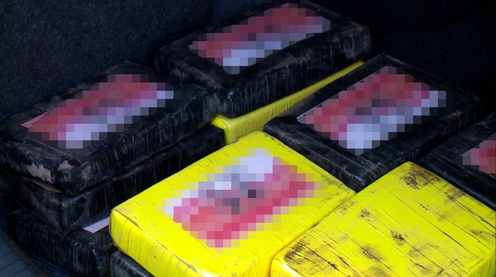 Durante vistoria no carro, os policiais encontraram um fundo falso com 34 tabletes de cloridrato de cocaína, que pesam 35,6 kg.