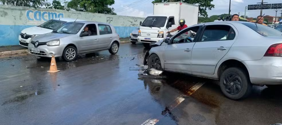 Engavetamento entre 3 veículos causa engarrafamento em avenida em São Luís