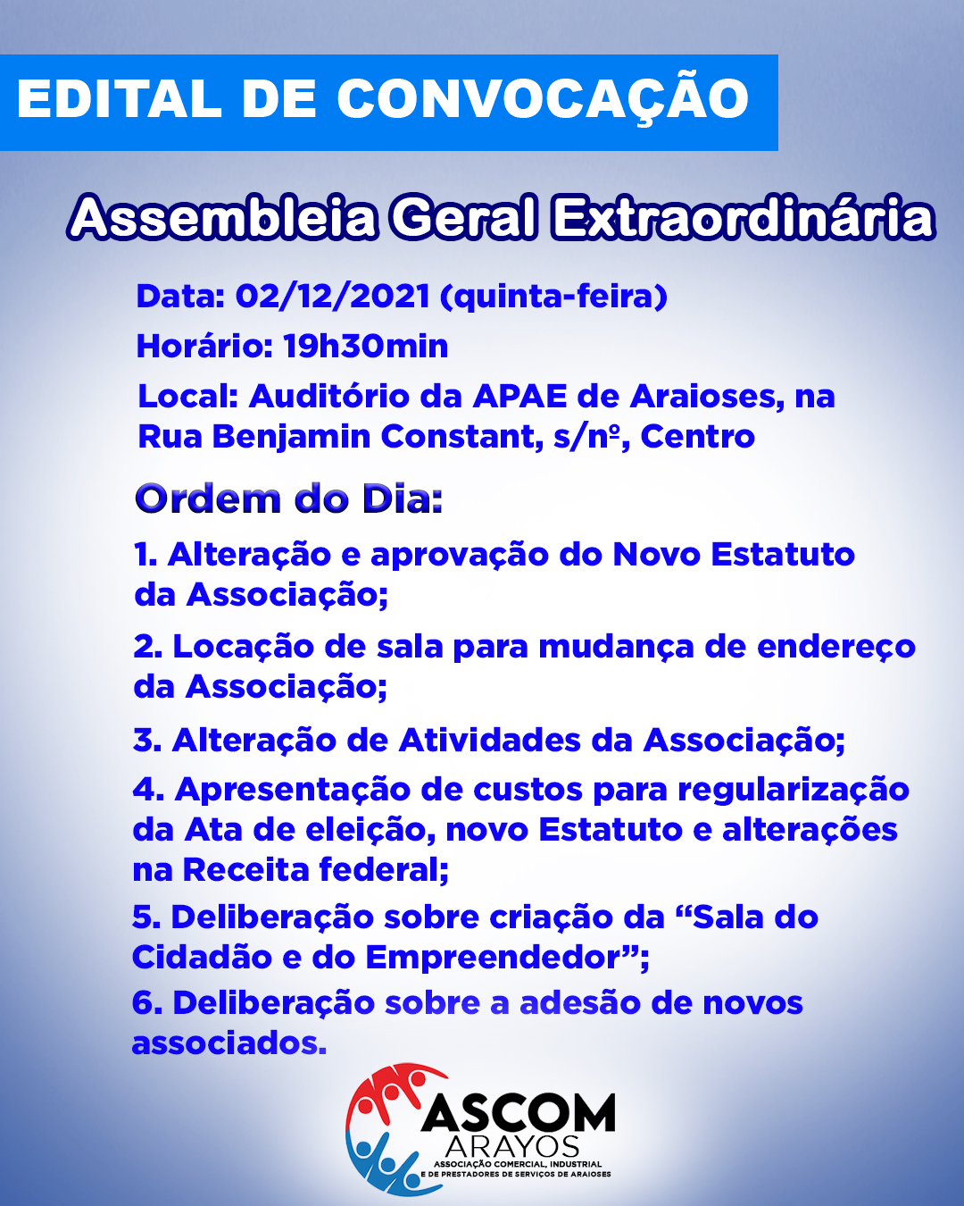 A Associação Comercial de Araioses, através de sua Diretoria, devidamente representada por seu Presidente Francisco Saul Raimundo Urcezino Pinto Ramos,… [ ]