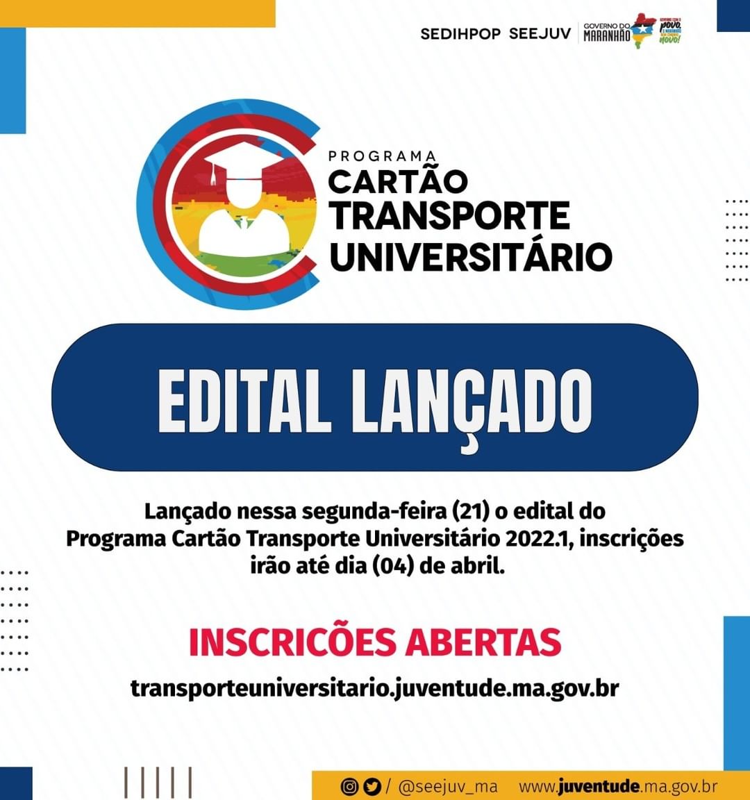 Saiu o Edital 2022.1 para as inscrições do Programa Cartão Transporte Universitário Maranhão