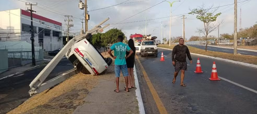 Um carro colidiu e destruiu um poste da rede elétrica, após capotar na avenida Colares Moreira, no bairro Renascença —… [ … ]