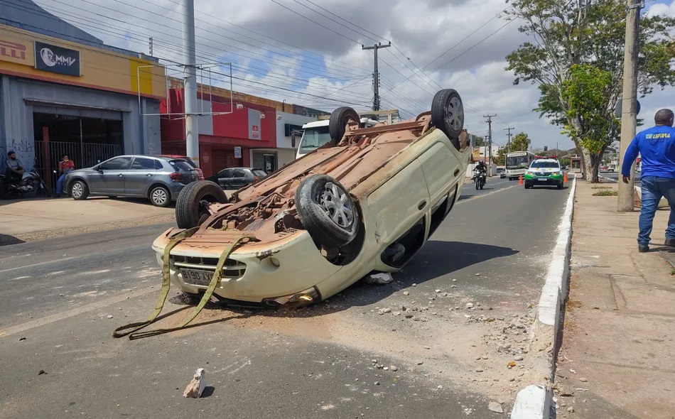 Carro capota após colidir em caminhão na Avenida Presidente Kennedy
