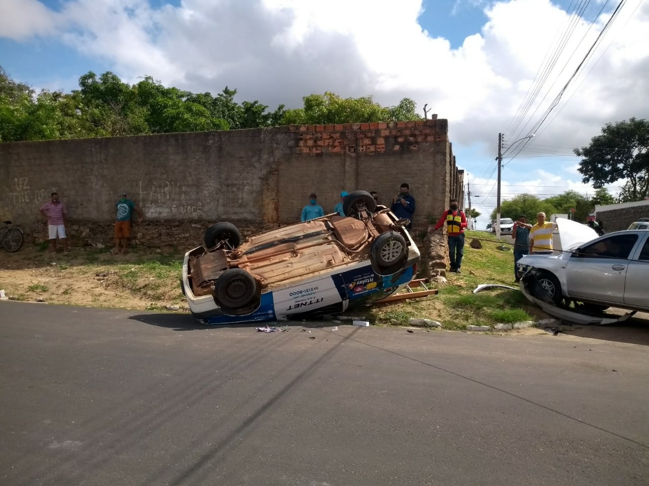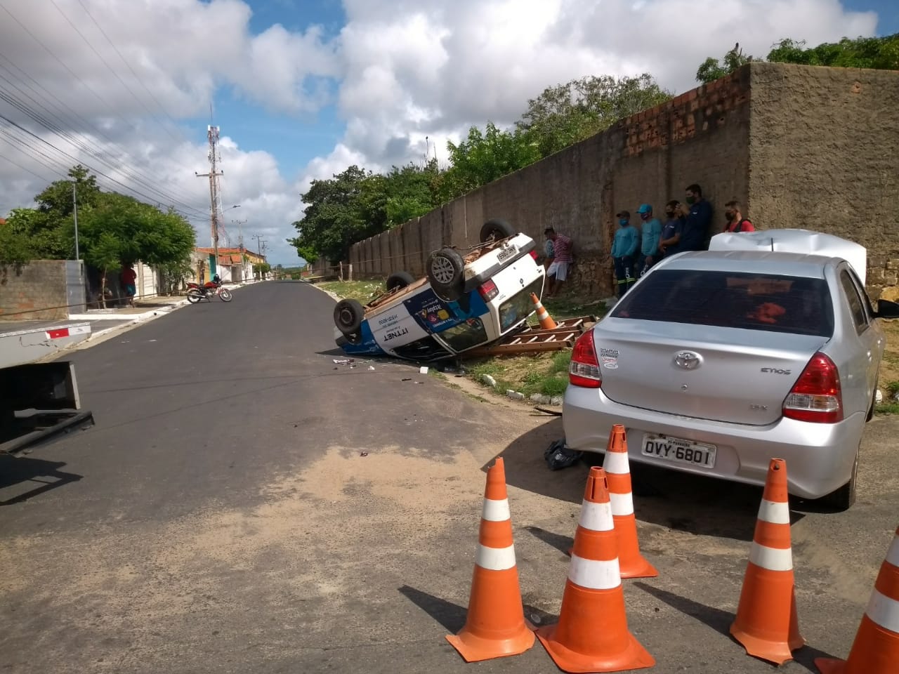 A informação que o veículo modelo Etios seguia pela Rua Borges Machado quando colidiu contra o automóvel modelo Fiat Uno, de uma operadora de internet. Na forte colisão lateral o Fiat acabou capotando ficando com os pneus para cima, como mostra as imagens.