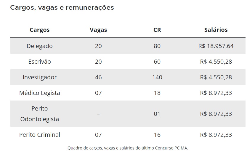 Neste mês de março/2024 está prevista a escolha da banca organizadora do certame. O Ministério Público do Maranhão (MP/MA) acionou judicialmente o governo para exigir a realização de novo concurso para a Polícia Civil (PC/MA).