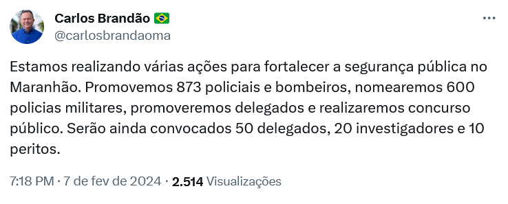 Um novo concurso público para a Polícia Civil do Maranhão será realizado ainda em 2024. Foi o que garantiu o governador Carlos Brandão, por meio de suas redes sociais.