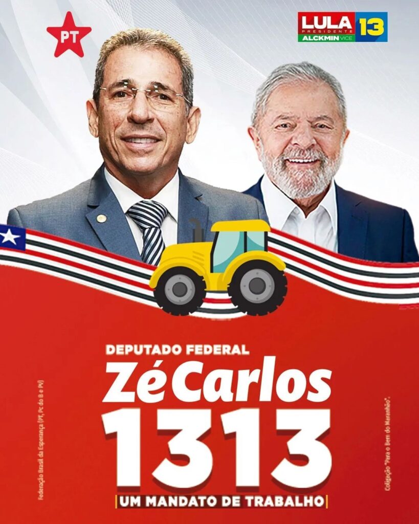 “É com Lula13 que vamos caminhar mais uma vez! Ao lado dos militantes, movimentos sociais, trabalhadores e trabalhadoras, estudantes, jovens, da população LGBTQIA+, agricultores e quilombolas, que vamos rumo à vitória. É Lula lá e Zé Carlos aqui no Maranhão! É PT duas vezes, 1313!”, destacou Zé Carlos em suas redes sociais.