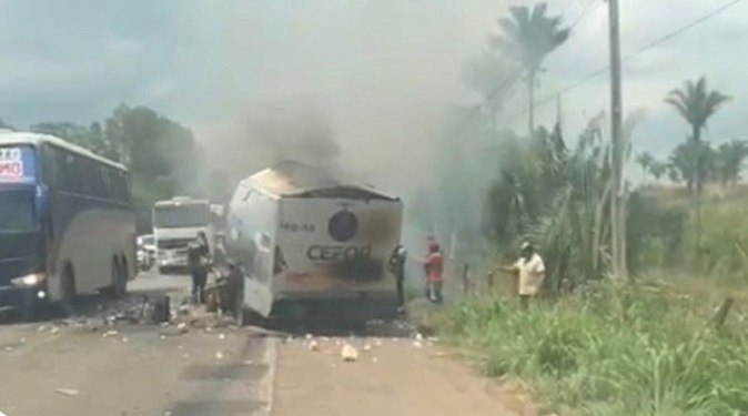 Bandidos fortemente armados explodiram um carro-forte, na manhã desta quinta-feira, 3 na BR-135, entre as cidades de Dom Pedro e Santo Antônio dos Lopes.