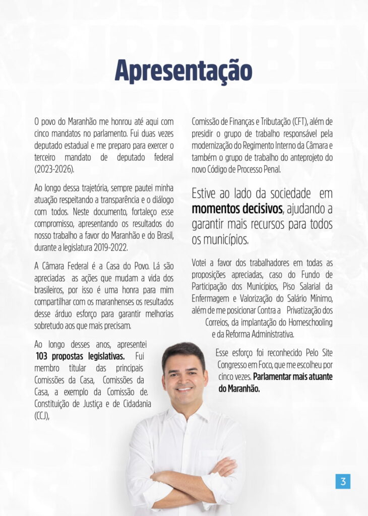 O objetivo é mostrar ao povo maranhense os resultados do mandato em Brasília e no Maranhão. A versão impressa do arquivo será distribuída no estado no próximo mês.