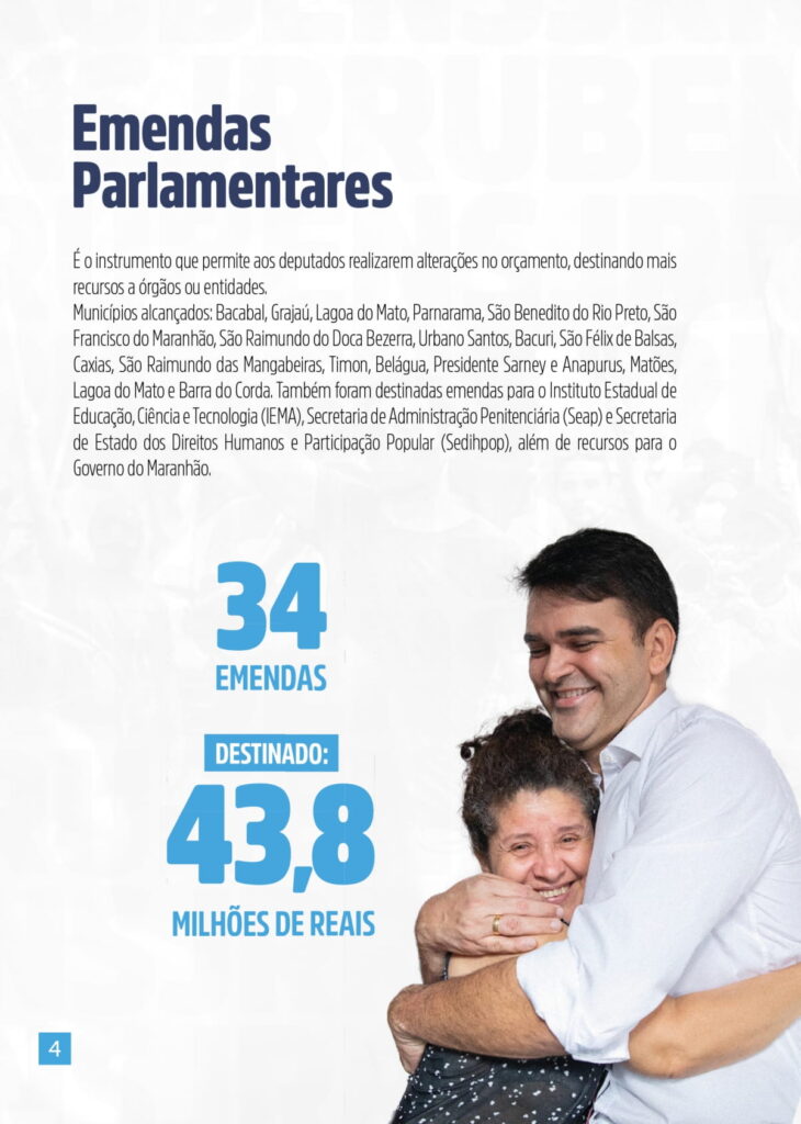“A transparência é fundamental em uma democracia. E prestar contas é um dever de todo parlamentar. O povo quer saber o destino dos recursos públicos, os posicionamentos e as propostas que melhoram a vida das pessoas”, afirmou o deputado federal Rubens Jr.