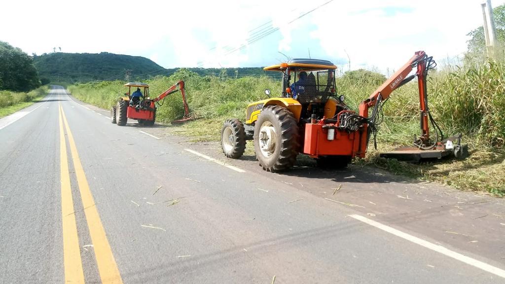 Por fim, na BR-135/MA, as equipes da Autarquia trabalham entre o km 427 e o 410, com a roçada da faixa de domínio e a limpeza dos dispositivos de drenagem, próximo à Colinas.