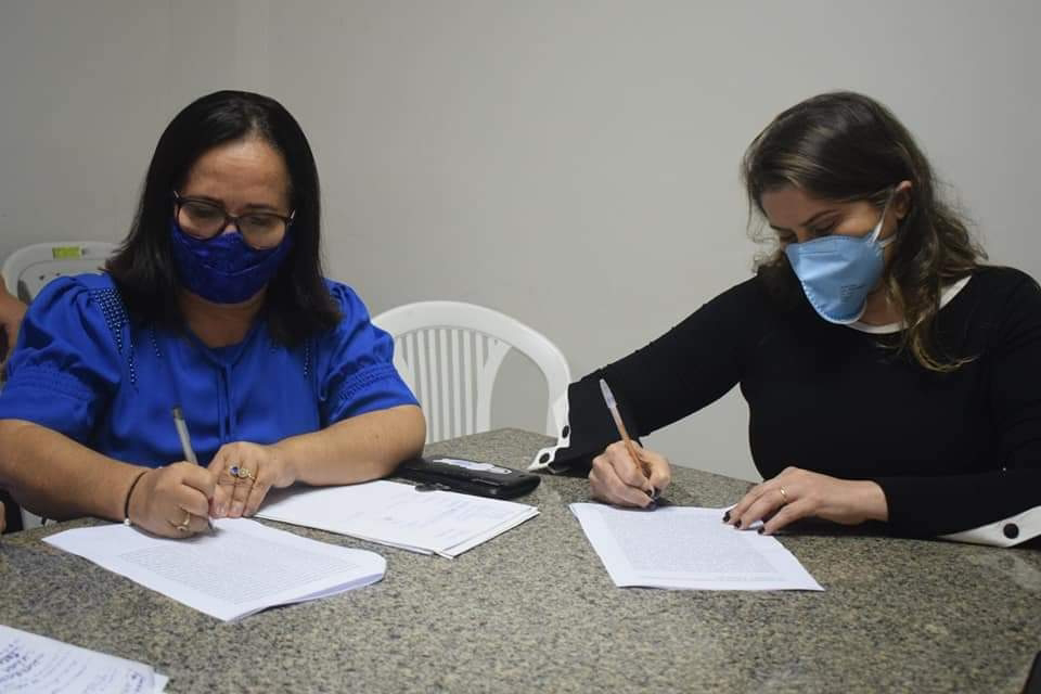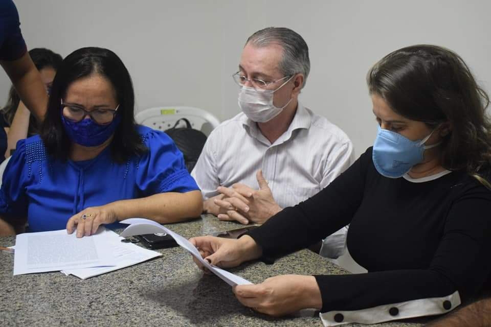 A prefeita eleita acompanhada de sua equipe de coordenação e transição estiveram reunidos com a equipe do prefeito Magno, que foi representado pela primeira dama e Secretária de Assistência Social Danubia Carneiro.