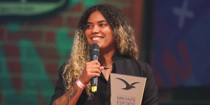 Na última edição do Troféu Mirante aqui no Teatro Arthur Azevedo, eu estava chorando, falando sobre o quanto eu queria esse prêmio. Agora é o quarto troféu, logo após ser coroada a melhor atleta de beach soccer do mundo, e estou muito feliz com esse reconhecimento. O recado que eu passo para todos os atletas é que não desistam. Eu saí do interior do Maranhão para ser coroada a melhor do mundo. Se eu consegui, vocês também podem conseguir. É difícil, é árduo o processo, mas persistam e tenham fé.