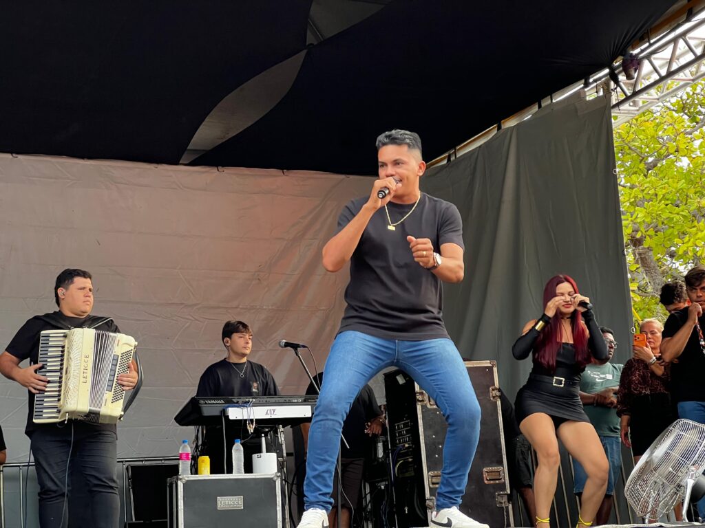 Com muita animação, a apresentação de Flávio Pisado Quente garantiu forró e alegria ao público, movimentando o cais e reforçando a importância de manter vivas as manifestações culturais nos povoados do município.