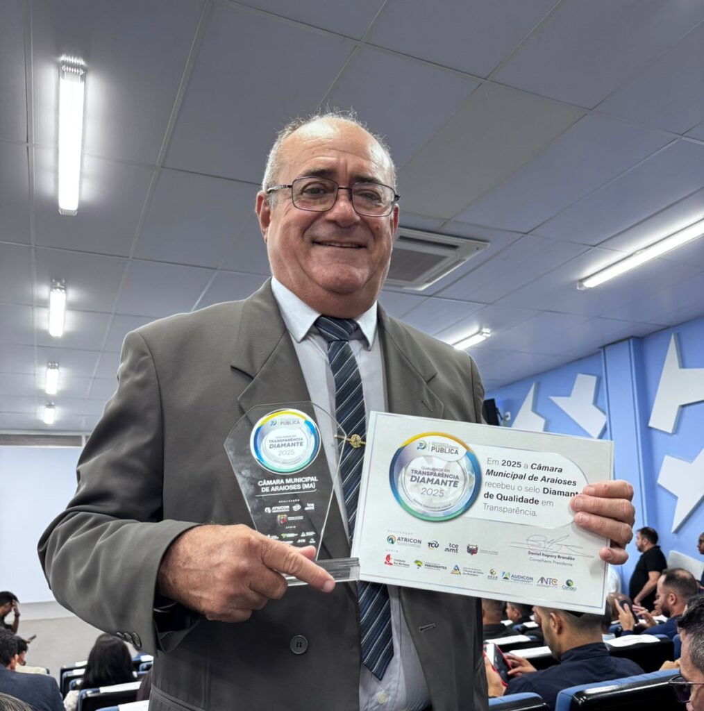 A Câmara Municipal de Araioses alcançou um dos mais importantes reconhecimentos nacionais na área da gestão pública ao receber o Selo Diamante de Qualidade em Transparência, concedido pelo Programa Nacional de Transparência Pública (PNTP) – Ciclo 2025. A certificação foi entregue durante solenidade realizada nesta terça-feira (16), no Tribunal de Contas do Estado do Maranhão (TCE-MA).