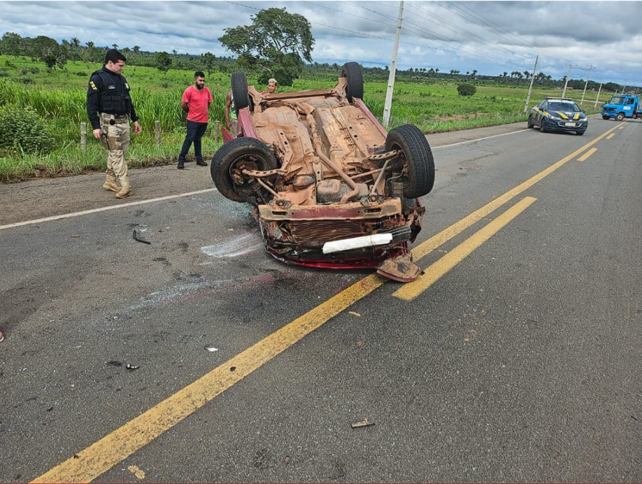 Com o impacto, o carro tombou no meio da BR de pneus para cima. Uma passageira do Celta, de 87 anos, foi levada com lesões graves para o hospital, mas não resistiu. O condutor. de 51 anos, teve ferimentos leves, apesar de ter ficado preso às ferragens. A passageira e o motorista do caminhão também se fenram sem maior gravidade