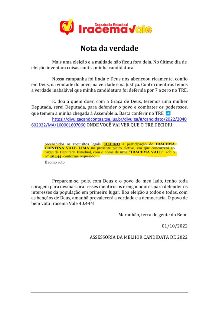 Iracema Vale rebate fakenews; candidatura a deputada estadual está confirmada!