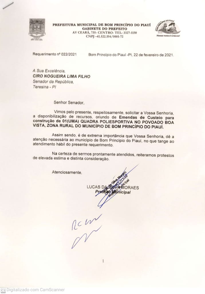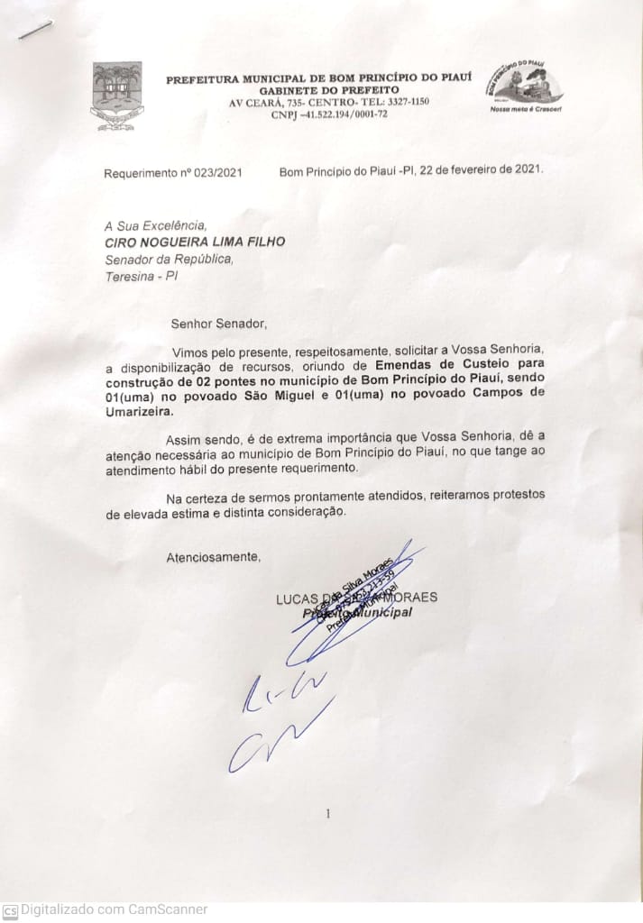 Desde que assumiu o município de Bom Princípio do Piauí, em 01 de janeiro de 2021, o prefeito Lucas Moraes segue incansavelmente em busca de apoio e parcerias em prol de um Bom Princípio do Piauí cada vez melhor.Ofícios entregues ao senador. (LINK)