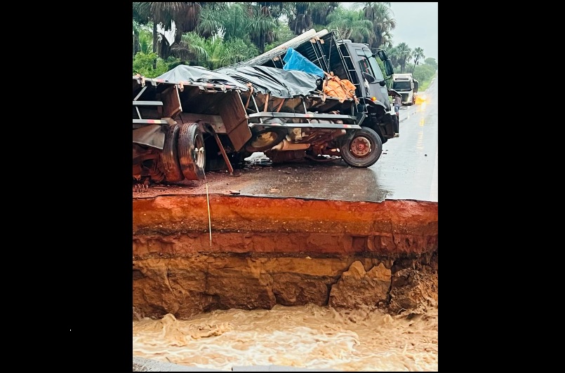 As fortes chuvas que caíram nas últimas horas no interior do Maranhão causaram a interdição completa em um trecho do km 392 da BR-230, em Balsas, devido a eroção da via.