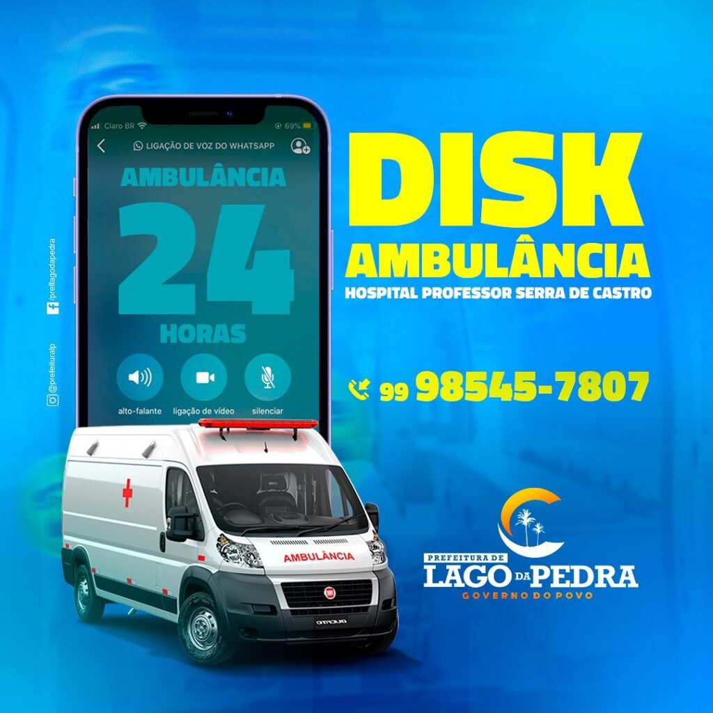 O Disk Ambulância, implantado em Lago da Pedra, está entre as ações do programa de preservação da vida e facilitação do acesso do cidadão a um sistema de saúde de qualidade, estabelecido por Maura Jorge. Pelo telefone (99) 98545-7807, o cidadão lagopedrense, em situação de emergência, terá acesso direto ao departamento responsável pelas ambulâncias municipais, agilizando a prestação do socorro rápido e necessário às possíveis vítimas.