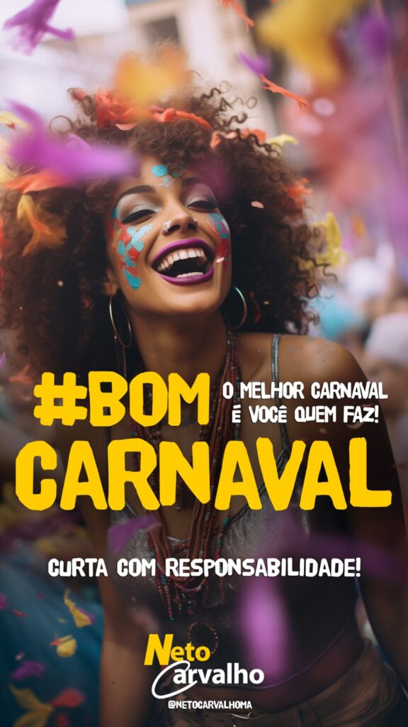 “Desejo um feliz carnaval para todos. Muita diversão com responsabilidade sempre. Vamos abrir alas para a paz, alegria, amor e respeito ao próximo. Grande abraço”, disse Neto Carvalho.