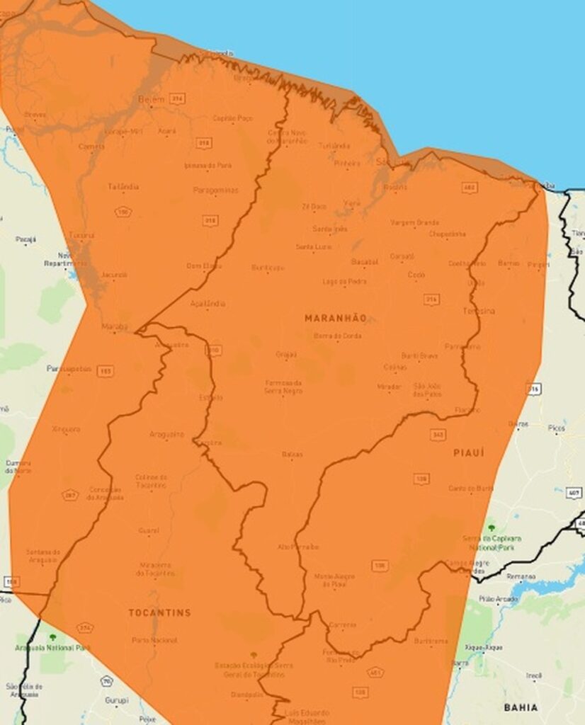 O Instituto Nacional de Meteorologia (Inmet) emitiu nesta terça-feira (4) um alerta laranja de chuvas intensas em todo o território do estado do Maranhão.