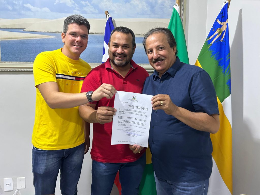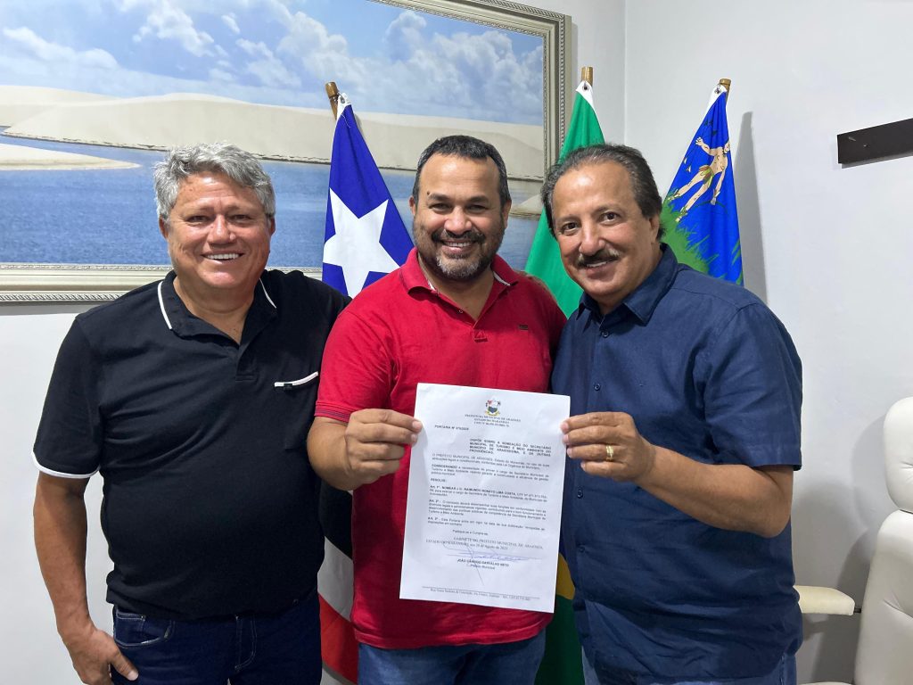 Na manhã desta quarta-feira, 20 de agosto, o prefeito Neto Carvalho deu posse ao vice-prefeito Monhata Lima como novo secretário municipal de Meio Ambiente e Turismo de Araioses. O ato contou com a presença do prefeito Neto Carvalho, do secretário de Educação, Ciência, Tecnologia e Inovação, Rarison de Albuquerque, do secretário de Finanças, Rafael Carvalho, além do ex-secretário da pasta, Castelo.