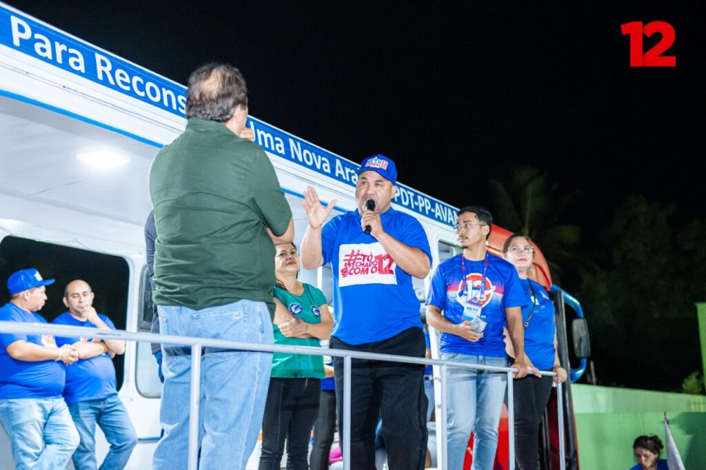 A agenda de palestras do PDT 12 nos bairros e povoados de Araioses segue de maneira muito intensa, onde na noite desta segunda-feira (16/09), o candidato a prefeito Neto Carvalho (PDT – 12), juntamente com seu vice prefeito Monhata Lima, estiveram com o candidato a vereador Antonio Marculino (PP – 11555) e demais candidatos a vereadores, dialogando propostas de melhorias para Melancias e região, com a presença de vários populares.