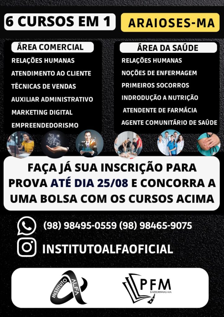 Oportunidades: Instituto Alfa e Projeto Futuro em Minhas Mãos ofertam bolsas de Cursos profissionalizantes na cidade Araioses