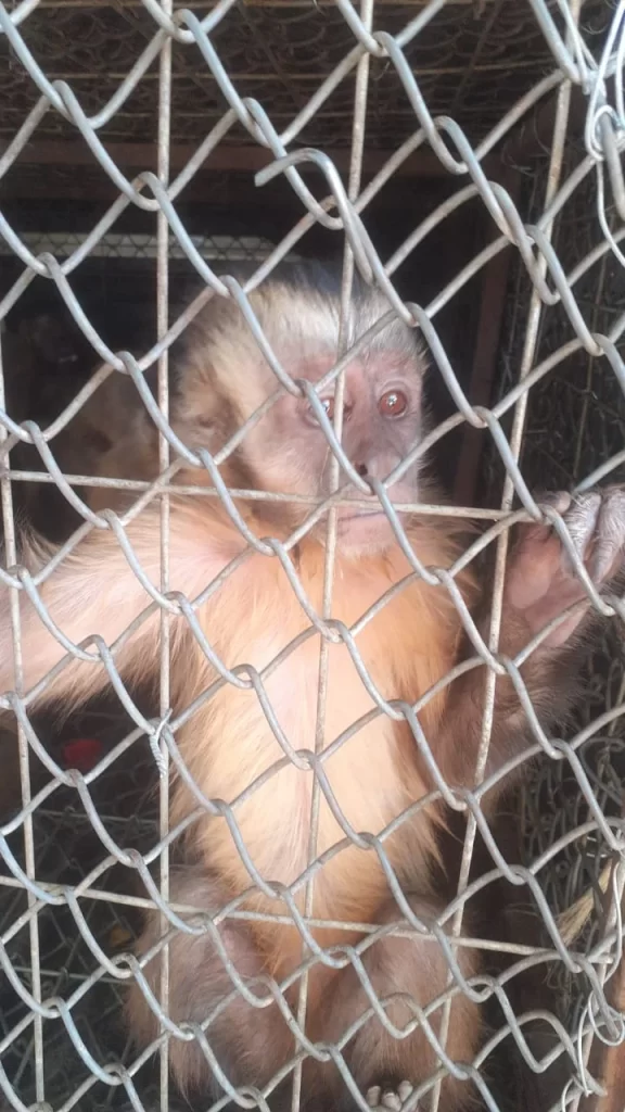 O macaquinho passou para a fase de reabilitação e treinamento que durou cerca de 3 meses nos viveiros do CETAS da SEMAR, visando a formação de um grupo de primatas da sua espécie (Sapajus libidinosus), nome comum do macaco-prego.