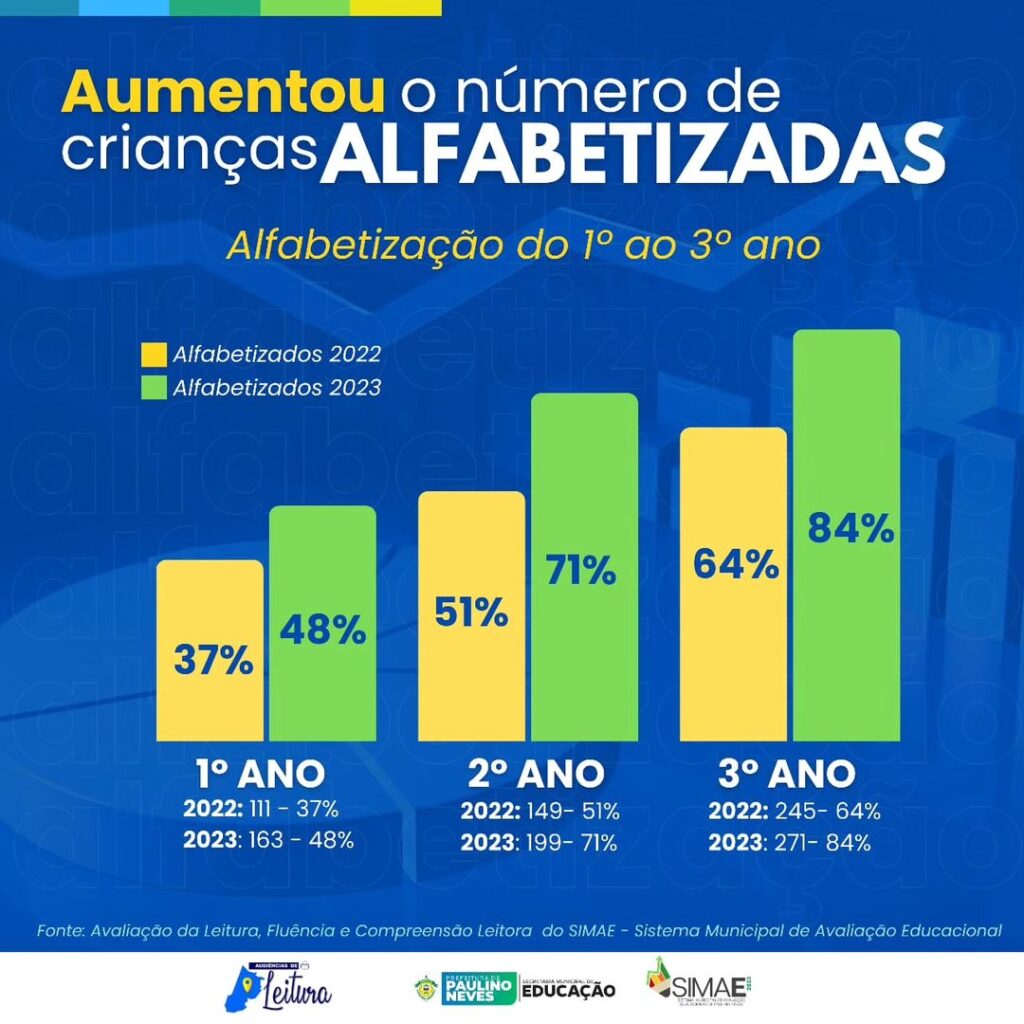 A alfabetização dos alunos do 1º ao 3º ano evoluiu entre 2022 e 2023, quando as ações em conjunto começaram a ser colocado em prática para erradicar o analfabetismo no ensino municipal.