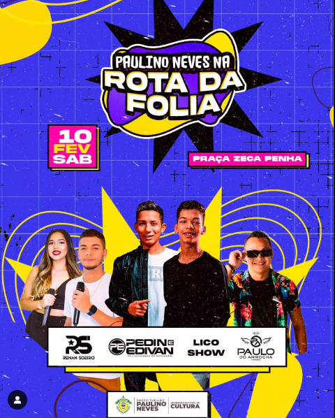 Programação Oficial do Paulino Neves na Rota da Folia deste sábado (10/02)