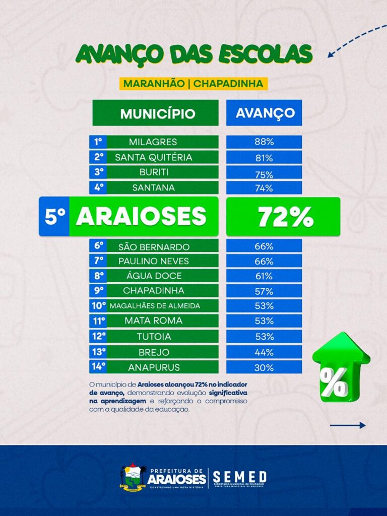 O resultado é fruto de um trabalho contínuo da Prefeitura de Araioses, por meio da Secretaria Municipal de Educação, que vem fortalecendo políticas públicas, valorizando os profissionais da educação e investindo na melhoria da qualidade do ensino.