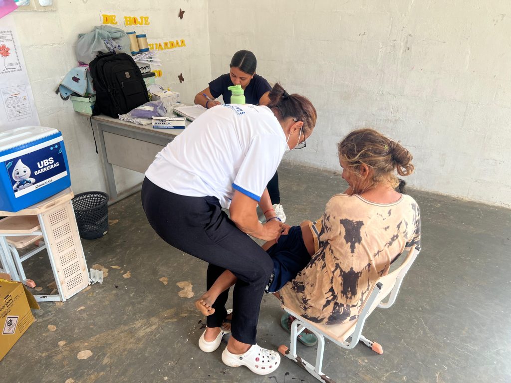 A ação contou com a presença da médica Ariane Rodrigues e da enfermeira Taysa Carvalho, além da equipe da UBS de Barreiras, composta pelas técnicas de enfermagem Cimara e Samara, a digitadora Khauany e os agentes comunitários de saúde Maria do Carmo e João Batista.