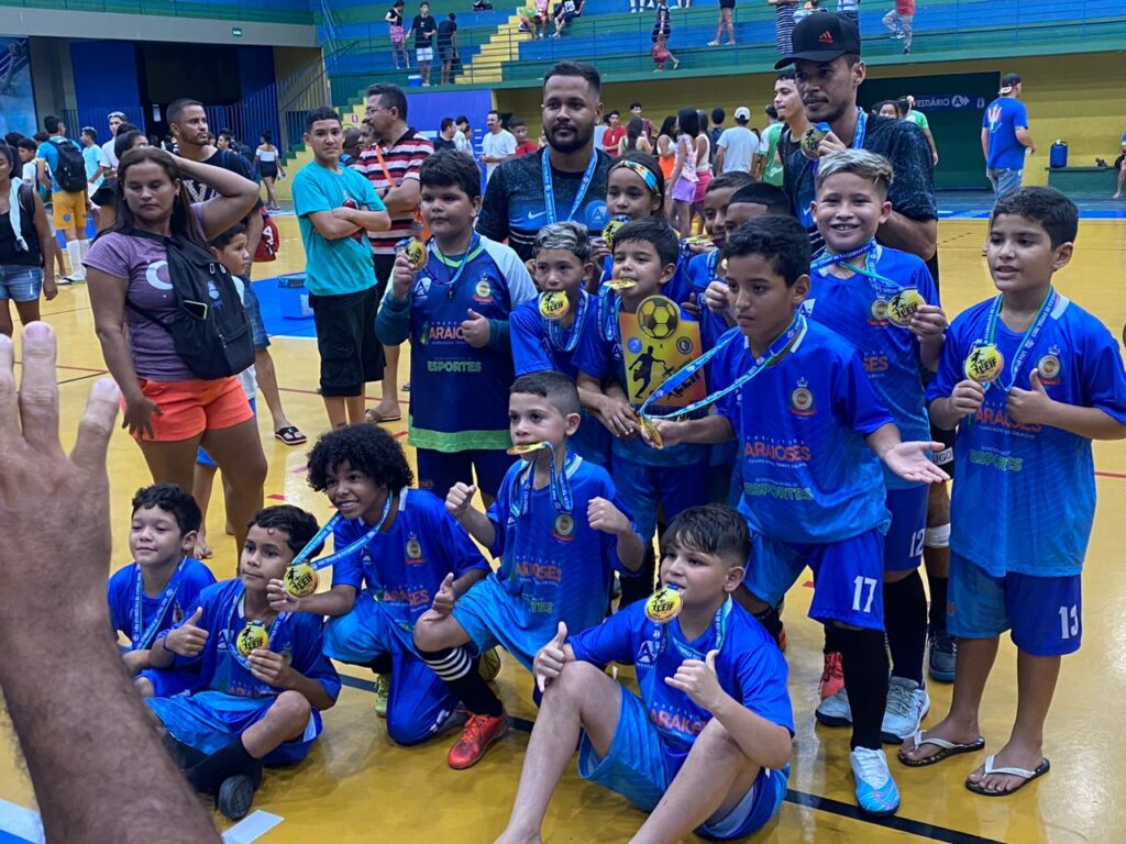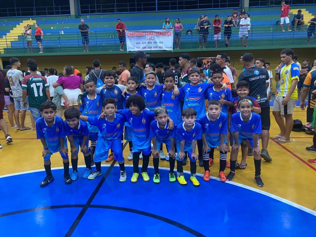 Os Atletas do Projeto Avenida Futsal de Araioses, da categoria sub 9, que tem a frente os coordenadores Janey, José e Gabriel, foram campeões da Liga Evangélica de Futsal Independente, no Ginásio Verdinho, em Parnaíba, no último sábado, 23 de março de 2024.