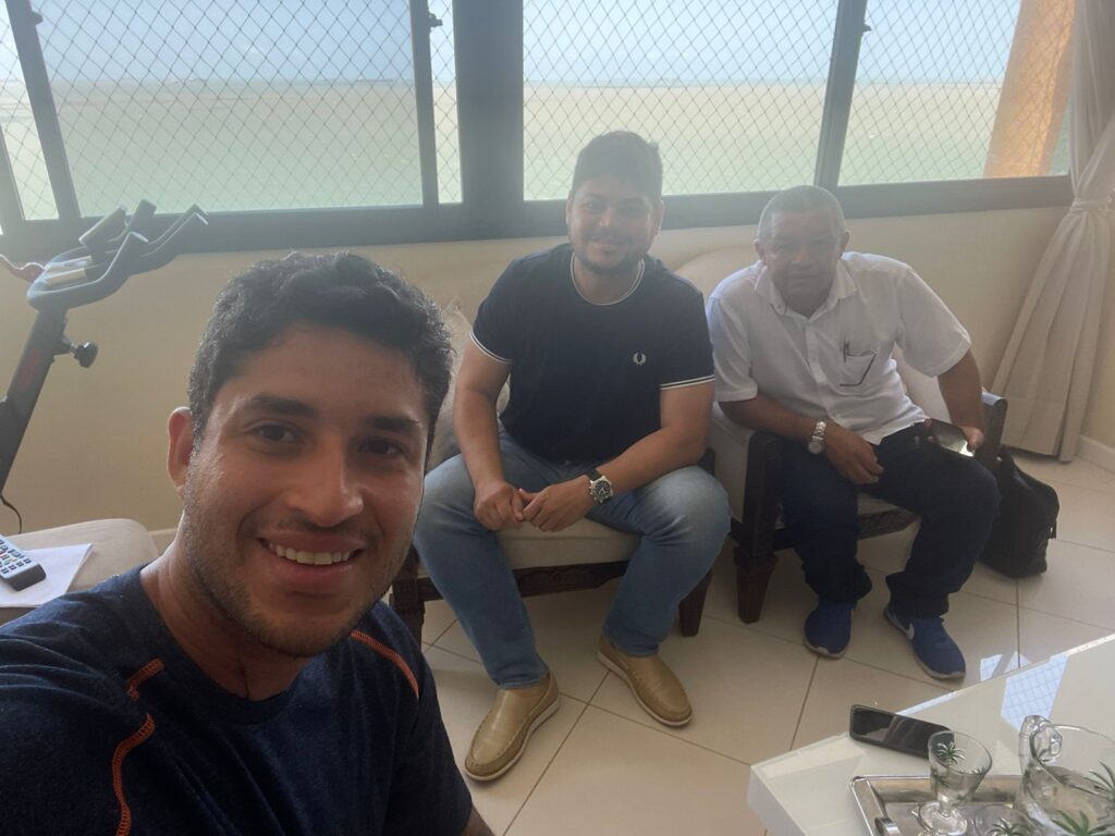 Nesta quarta-feira (24/11), o vereador Nataniel da Pesca esteve na capital maranhense, São Luis, para um encontro com o Superintendente de Pesca Federal, Guilherme Paz, e com Roberto Rocha Junior, filho do Senador Roberto Rocha.